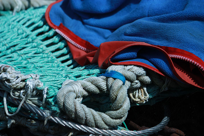 Entre quelques rochers les pêcheurs ont oublié du cordage. Usés il ne serviront plus à rien mais personne ne peut les récupérer pour leur offrir une nouvelle vie, ils sont bloqués.