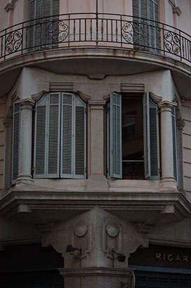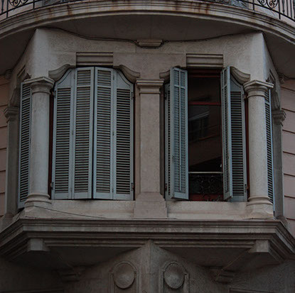 Qui a ouvert les volets provoquant cette asymétrie? Architecture classique, ferronnerie parfaite et harmonieuse. Même l'Homme ne peut perturber ces bâtisses.