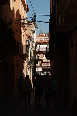 A l'ombre sous le ciel bleu espagnol s'érigent des façades de pierres oranges, à l'intérieur il fait frais, dehors on transpire encore.