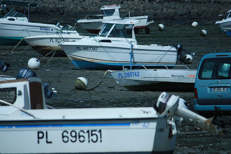 Les bateaux sont coincés au port le temps d'une oscillation de la mer. La plage brille de la marée qui meut la mer au fil des jours.