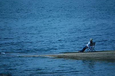 Femme face à l'immensité n'a pas peur de l'affronter, la Nature ne lui fera rien puisqu'elle n'est pas vengeresse, mais gare aux pieds mouillés. Portrait d'une contemplation révélatrice d'un esprit.