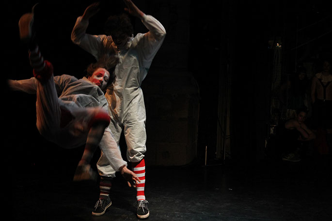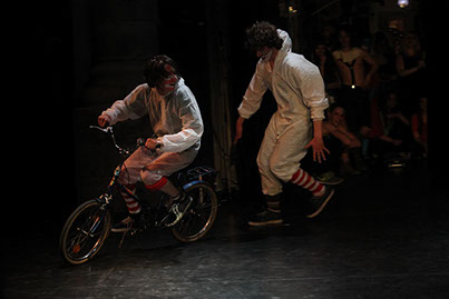 Concentrés à deux, les comiques présentent leurs filouteries, à la trois il sautera et le public applaudira, à la quatre ils tomberont sur la banane et le public rira.