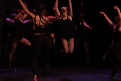 Haut les mains, les pieds quittent le sol. Chaque danseuse s'exprime au travers d'un saut. Danseuses montées sur ressort, il vous faudra redescendre du ciel étoilé pour dormir ce soir.