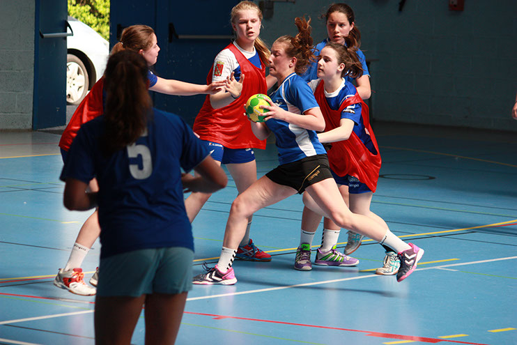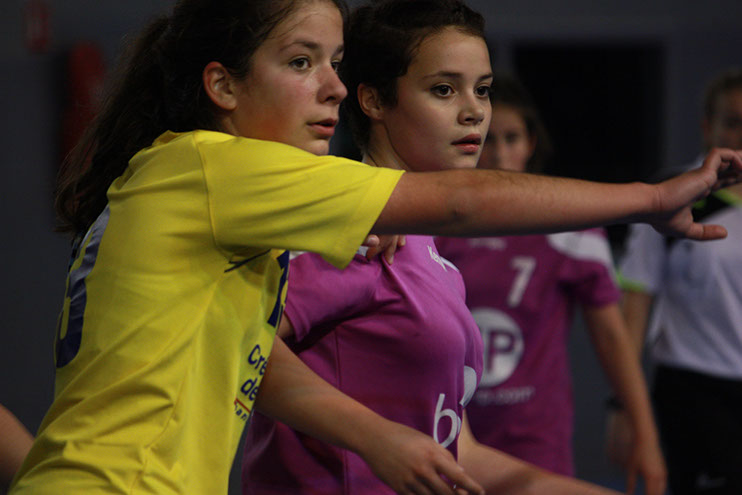 Chacune sa joueuse, et on met les bras! Tous les regards convergent vers la porteuse de balle, a qui va-t-elle faire la passe?